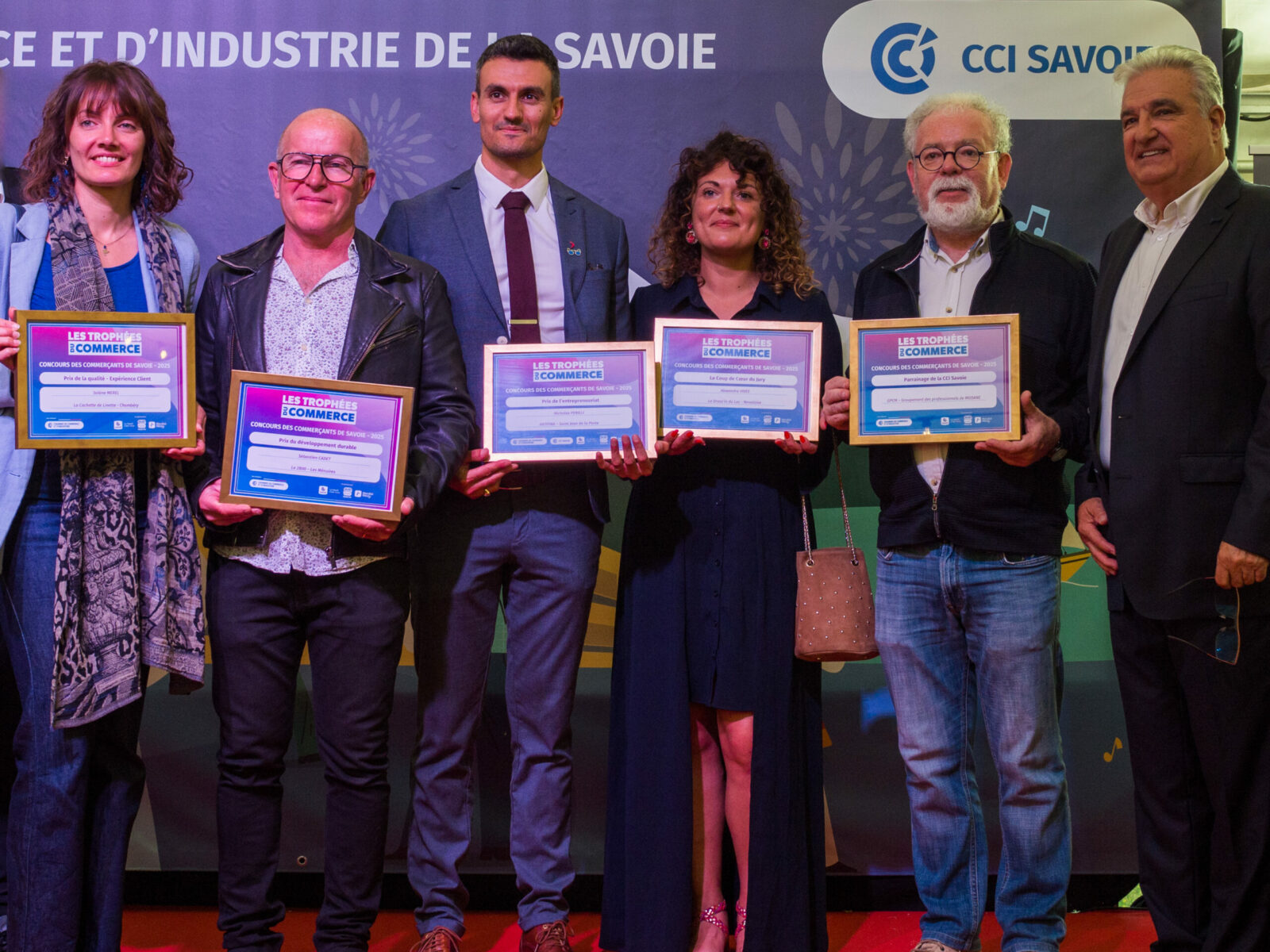 C’est également à l’occasion de cette soirée que  les 5 commerçants savoyards, lauréats des Trophées du commerce 2025 dont je fais partie à travers ARTPINA, ont été mis à l’honneur.